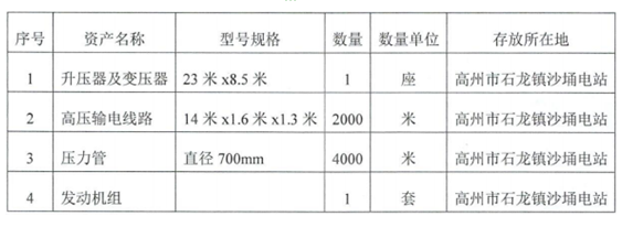 一、广东省高州市人民法院对高州市石龙镇沙埇电站的以下财产采取查封公示措施: