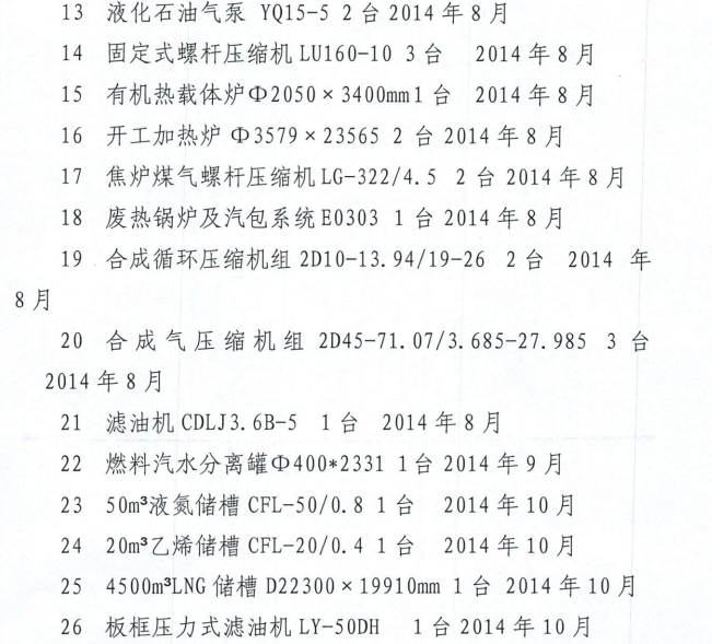 一、黑龙江省鹤岗市南山区人民法院查封鹤岗市嘉润能源有限公司的机器设备185台,设备具体明细如下: